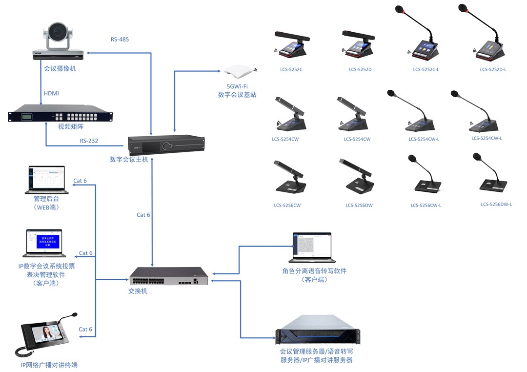 系統(tǒng)支持六類網(wǎng)線手拉手連接,同時(shí)支持2.4G/5.2G/5.8G三頻WIFI組網(wǎng),同時(shí)支持最大10人發(fā)言,有線無線單元均支持會(huì)議發(fā)言、攝像追蹤、會(huì)議簽到、投票表決、EQ調(diào)節(jié)等功能。