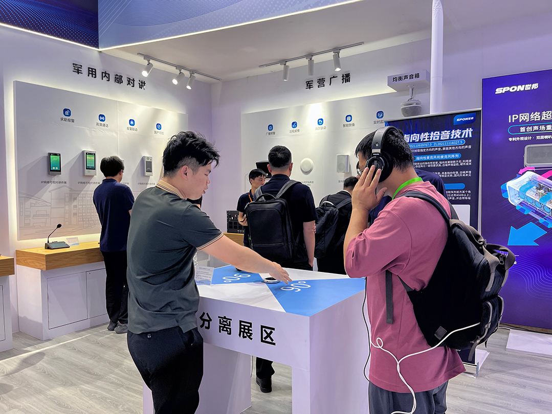 展會首日,世邦展臺吸引了眾多參展客戶,世邦提供以音頻為核心的解決方案,并展示了多項自研技術,支持根據(jù)具體場景實施落地方案,全國產化音頻智能物聯(lián)解決方案,助力國防領域國產化自主率提升。參展客戶紛紛蒞臨展臺,現(xiàn)場感受世邦產品帶來的真實效果,并詢問核心技術的場景延展應用。
