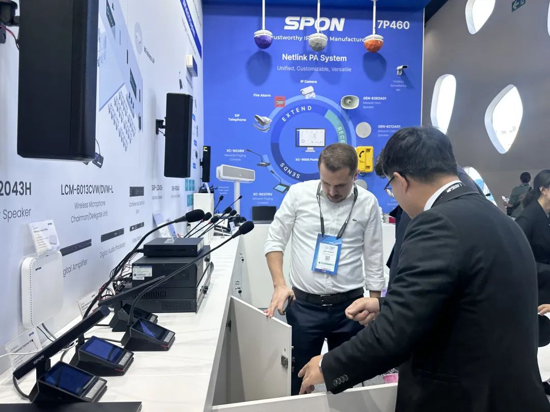世邦通信多年來深耕音頻研發(fā)細(xì)分領(lǐng)域,此次展會(huì),重點(diǎn)展示Mosque Audio System(清真寺廣播系統(tǒng))、Conference System(會(huì)議系統(tǒng))、SIPlink PA System(SIPlink廣播系統(tǒng))、Netlink PA System(Netlink廣播系統(tǒng))等,輕量化系統(tǒng),部署簡(jiǎn)單、擴(kuò)展靈活、穩(wěn)定可靠,適用于教育、金融、寺廟、商貿(mào)、樓宇酒店等需要廣播、對(duì)講和會(huì)議發(fā)言的音頻使用場(chǎng)景。展會(huì)現(xiàn)場(chǎng)體驗(yàn)產(chǎn)品擴(kuò)聲效果和輕量化系統(tǒng)部署,收獲了眾多海外客戶的關(guān)注與認(rèn)可。