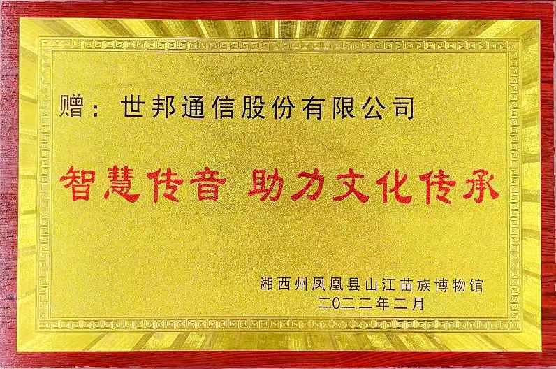 近日,世邦收到了來自湘西州鳳凰縣山江苗族博物館、湘西州花垣縣抗日革屯博物館送來的感謝牌匾,感謝世邦為地方博物館的建設(shè)無償捐贈(zèng)智能廣播安防設(shè)備。通過世邦“人工智能”安防系統(tǒng)的部署,大力提升了博物館治安防控能力,助力民族文化的傳承與保護(hù)。